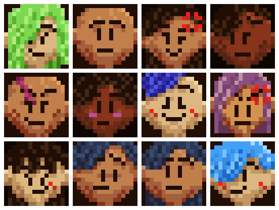 ° Varied Animated 16x16 and 32x32portrait expressions